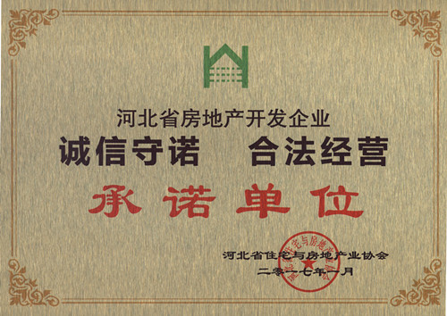 万浩地产受颁“诚信守诺,合法经营”承诺单位