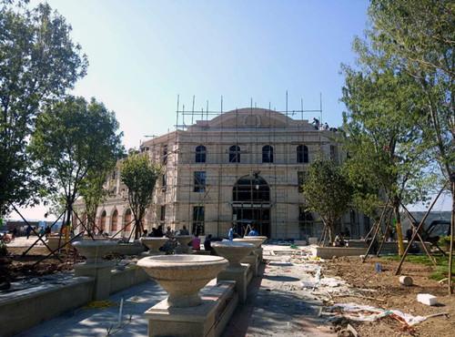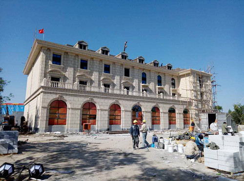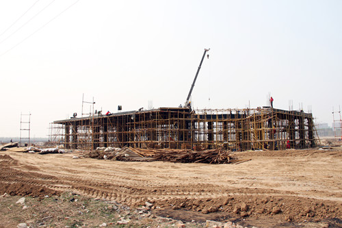 在项目开始动工之初,集团副总经理王恩祥带领有关部门到项目现场,安排部署开工的各项工作。要求项目部抓紧施工,确保工期;互相协调,确保联动;要按照标准,确保质量,发扬万浩速度,提高品味,树立形象,展现实力。随后,施工人员加班加点、拼抢工期,售楼部从场地平整到浇筑垫层,从主体完工到内部装修完毕,一座漂亮的售楼部和景观体验区从平地拔地而起也仅仅用了一个月的时间。