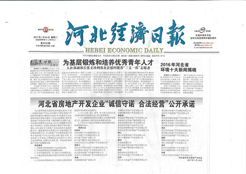 近日,由省住建厅指导,省住宅与房地产业协会组织的河北省40家房地产开发企业向社会做“诚信守诺 合法经营”公开承诺活动中,我公司作为唯一一家本地房企在邯郸市众多房地产企业中脱颖而出,受颁河北省房地产开发企业“诚信守诺,合法经营”承诺单位。